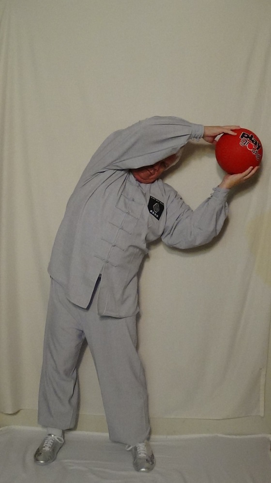 | the left hand forward. Now reverse. Bring the ball slowly back to the center of your waist exhaling |