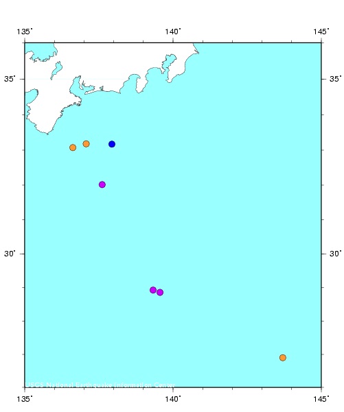 five hours apart: Richter 7.2 at 33.07 136.62 and then a Richter 7.4 at 33.18 137.07. The