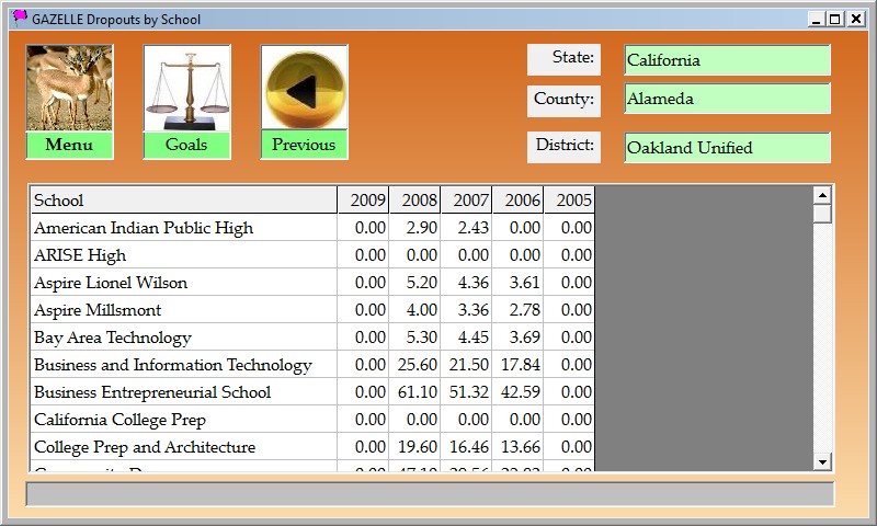 | Some fairly dismal numbers. It is usually the case that when a school was not open or did not report, in both cases it reports 0. This lacks clarity. We assert if a school does not report it should be tagged as 100% dropouts. |