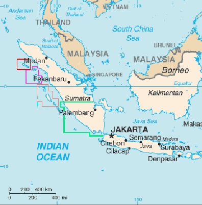Simeulue is the red-outlined (leftmost near Northern Sumatra) zone; Nias is the purple zone; Mentawai is