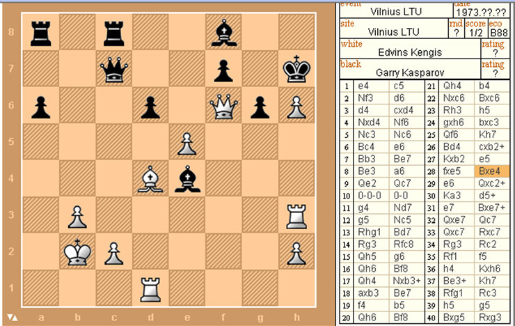 Black takes time at move 26 to clear away some protection for the White King (with check)