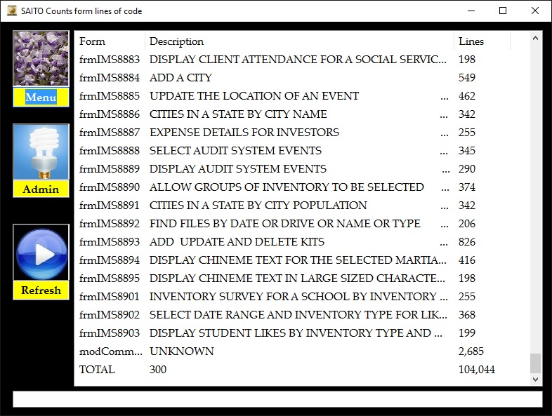 | Lines of code by form | |