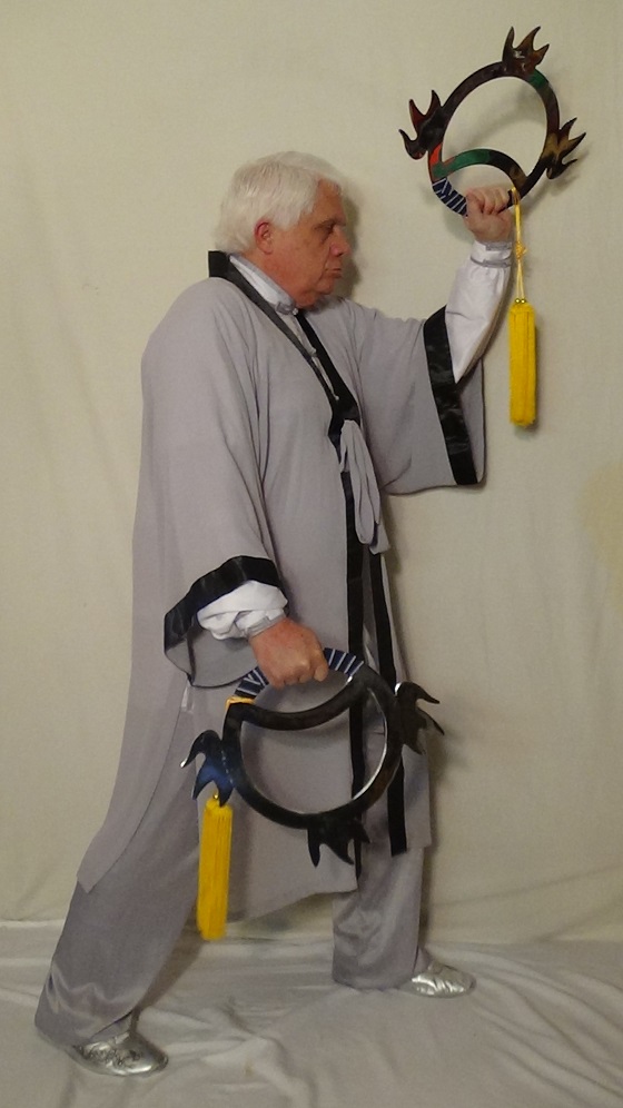 12/13/2016 Single Whip posture with weapons With the Ky Lin knives (technically, swords