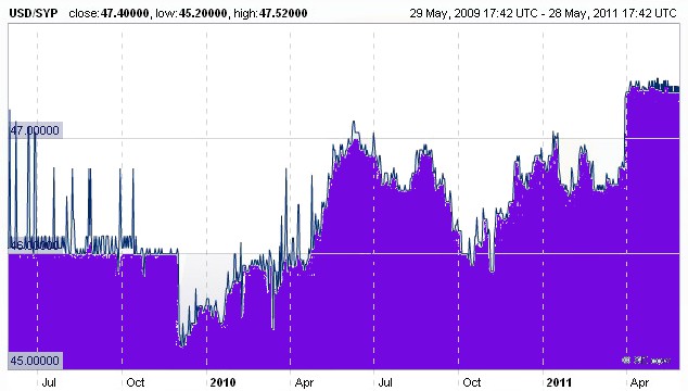 deeper. Some dramatic peaks and valleys but no more than 1 pound per dollar.