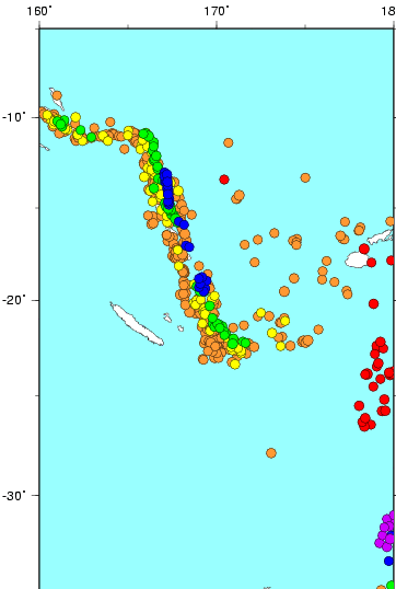 Just Richter 6.0 or greater events. Note that because the area is so active, one