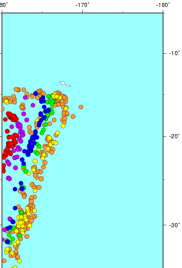 colored dot often represents multiple events. There have been 1073 Richter 6.0 or
