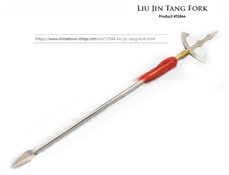 | The Liu Jin Tang fork - chinatown-shop and dragonsports.eu; 74", 3.6 pounds; product ID 11019 on dragonsports; |