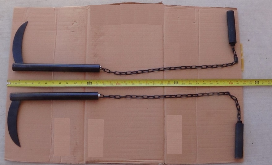 as a kusarigama (kama or sickle with a chain). Like the simple